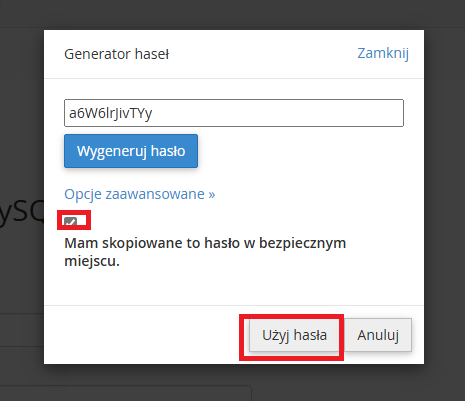 5. Po wygenerowaniu hasła, skopiuj je do odrębnego pliku i zapisz gdzieś na swoim komputerze.