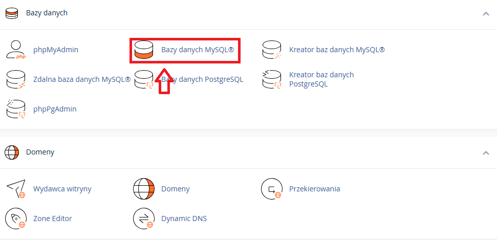 2. Odszukaj sekcję bazy danych w panelu administracyjnym: