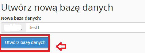 W pierwszym kroku nadaj nazwę swojej bazie danych. Jeśli Twój hosting wykorzystuje Cpanel, nazwa składa się z przedrostka, który jest nazwą Twojego konta hostingowego, oddzieloną podkreślnikiem, czyli: nazwaKontaHostingowego_nazwaBazy. W praktyce, zakładając, że rejestrując hosting, nazwałeś/aś go MyHostIT – przedrostek bazy MySQL zawsze będzie nosił nazwę MyHostIT_ + nazwa bazy MySQL, jaką sobie wymyślisz, aby rozróżniać swoje strony WWW. Dla przykładu może to być: MyHostIT_test1, a następnie kliknij przycisk tworzenia bazy danych.